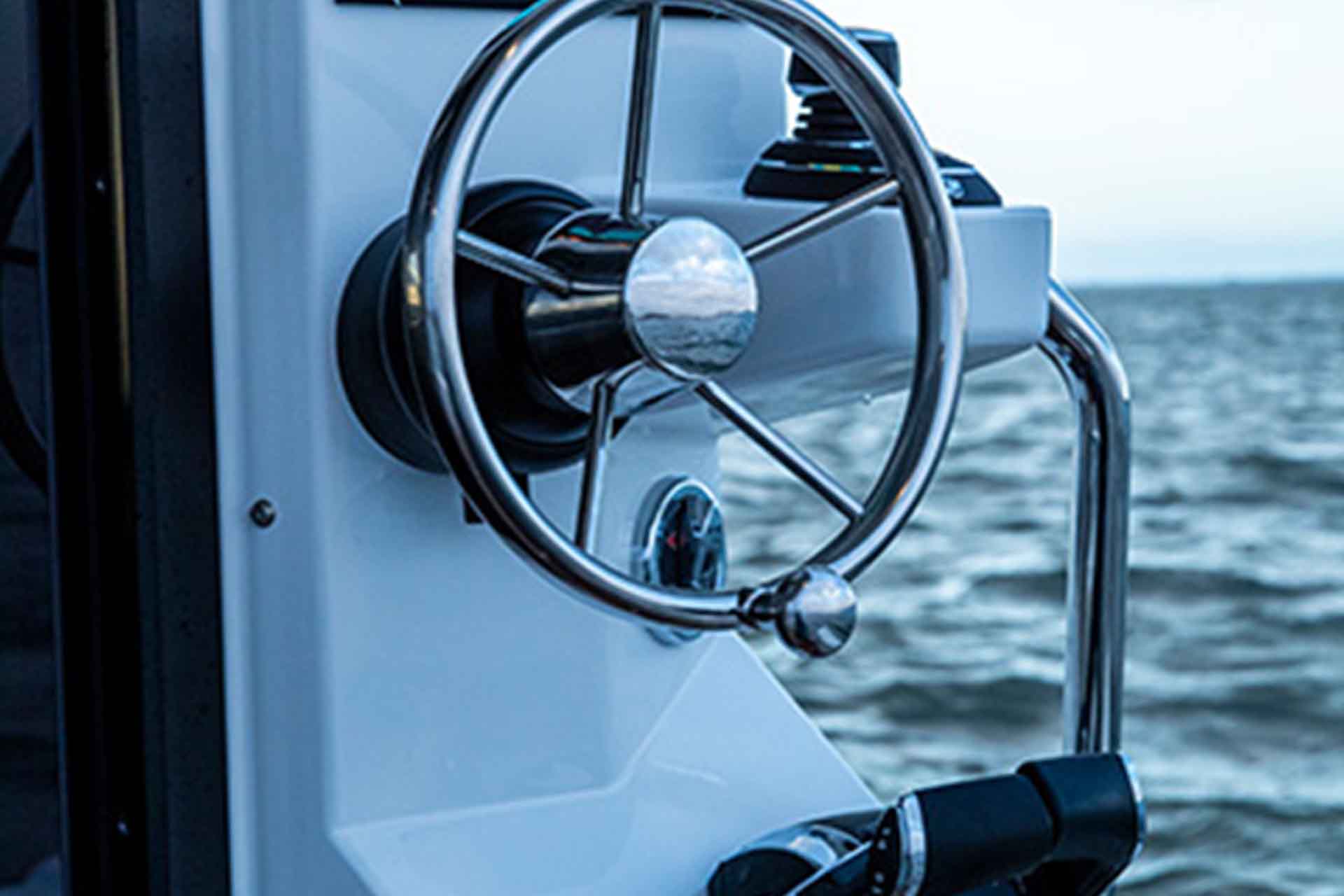 With a speed of 20 to 40 knots and an inboard range of nearly 300 nautical miles, the Nimbus C11 is a powerful and versatile boat. The balanced twin stepped hull, featuring a sharp bow and a low planning threshold, also handles rough waters with ease. To complete your vessel, opt for a joystick-controlled dynamic positioning and docking system, air conditioning, suspension seating, and solar panels.