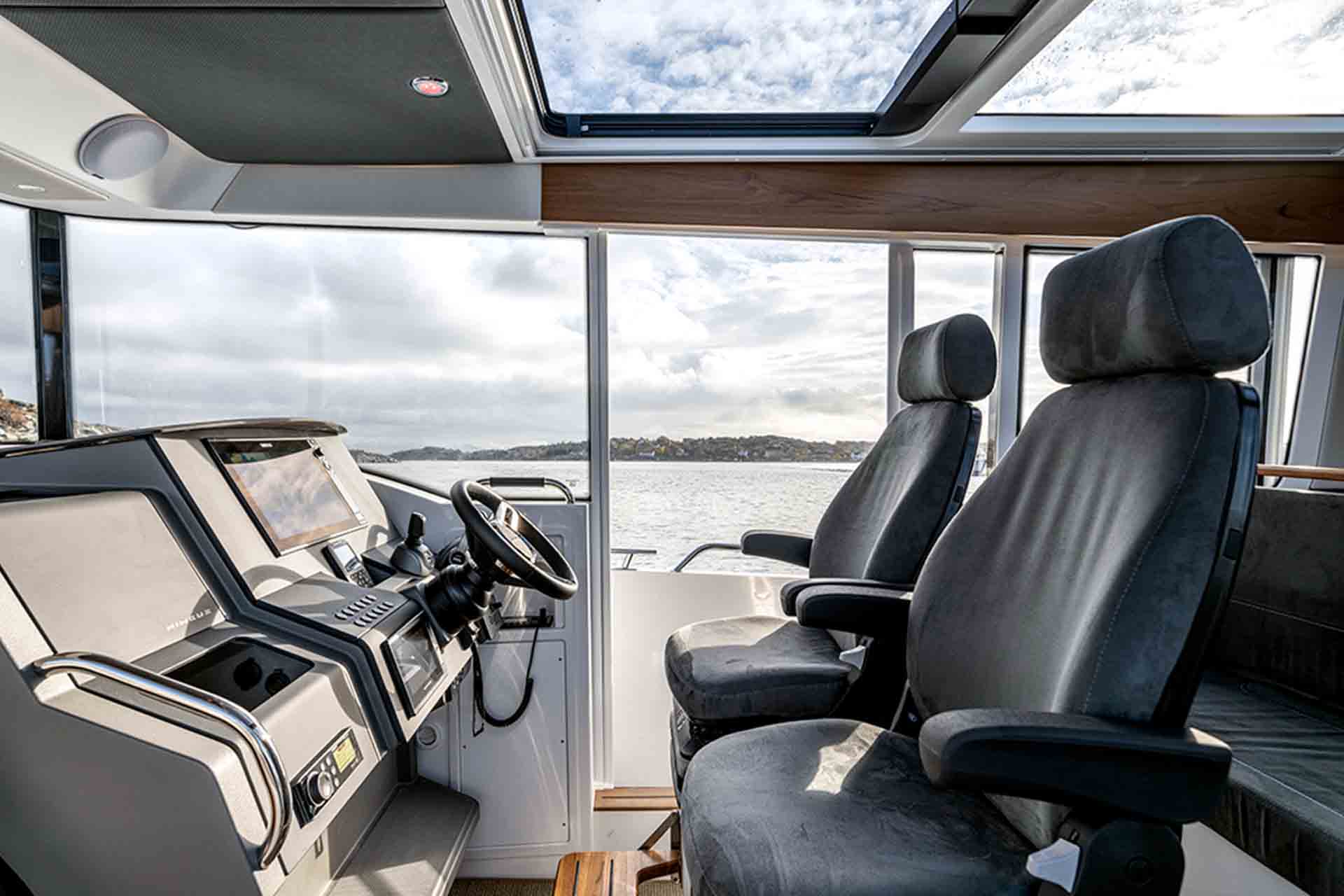 Speed, performance, and comfort combine in the Nimbus Commuter 11, making it a robust year-round yacht for long-distance cruising as well as daily transport. With its smooth handling, close to open design, and accommodation for up to nine passengers, the Nimbus C11 is a safe, seaworthy craft for families and adventurers alike.